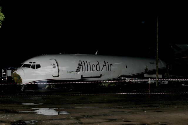 Τουλάχιστον 10 άνθρωποι σκοτώθηκαν το Σάββατο όταν ένα αεροσκάφος Boeing 727-200 της νιγηριανής αεροπορικής εταιρίας Allied Air, το οποίο εκτελούσε πτήση μεταφοράς εμπορευμάτων, βγήκε από τον διάδρομο μετά την προσγείωσή του στο αεροδρόμιο στην Άκρα, την πρωτεύουσα της Γκάνας, και χτύπησε ένα μικρό λεωφορείο.