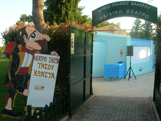 Ο Τάσος Κώνστας με το χάρτινο θίασο του μετά την ολοκλήρωση των παραστάσεων στο θεατράκι «Φιγούρες & Κούκλες» στην Πλάκα, κατηφορίζουν στο Φλοίσβο. Ο Δήμος Παλαιού Φαλήρου τους περιμένει στο νέο θερινό θέατρο σκιών, στο πάρκο του Φλοίσβου.