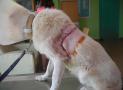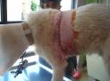 Όμως το τραύμα είχε μείνει ανοιχτό, είχε ήδη μολυνθεί και το δέρμα είχε ήδη αρχίζει να νεκρώνει δυσκολεύοντας την επούλωση του μεγάλου τραύματος. Από το κτηνιατρείο κλήθηκε ο Σύλλογος Φίλων Των Ζώων Χαλανδρίου για να αναλάβει τη φιλοξενία και την περαιτέρω φροντίδα μόλις στο τραύμα έγιναν ράμματα.