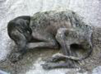 Το κορμάκι αυτού του κουταβιού ήταν γεμάτο μύγες και παράσιτα. Το ζώο δεν είχε τη δύναμη να ανοίξει ούτε τα ματάκια του και ακόμα και οι κτηνίατροι σάστισαν αντικρίζοντας το. Μια μάζα από κόκαλα και πέτσα, που ακόμα είχε μέσα του ψυχή! Η κα Αραβαντινού περιγράφει το τι είδε σήμερα: «Αυτό που αντίκρισα δεν μπορεί να περιγραφεί με λόγια...