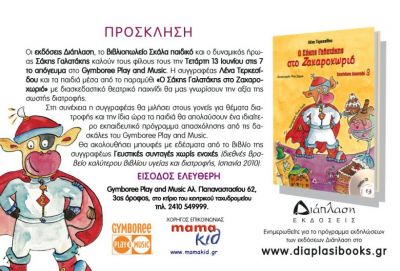 Οι εκδόσεις Διάπλαση, το βιβλιοπωλείο Σκάλα παιδικό και ο δυναμικός ήρωας Σάκης Γαλατάκης καλούν τους φίλους τους, την Τετάρτη 13 Ιουνίου στις 7 το απόγευμα, στο Gymboree Play and Music.