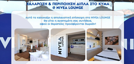 Α, να μην ξεχάσω να σας πω ότι και φέτος το NIVEA LOUNGE ανοίγει τις πόρτες του στην Astir Beach Βουλιαγμένης και σας περιμένει για να κάνετε δωρεάν θεραπείες για χαλάρωση και περιποίηση δίπλα στο κύμα. Όσοι πιστοί (του ήλιου και της θάλασσας) προσέλθετε.