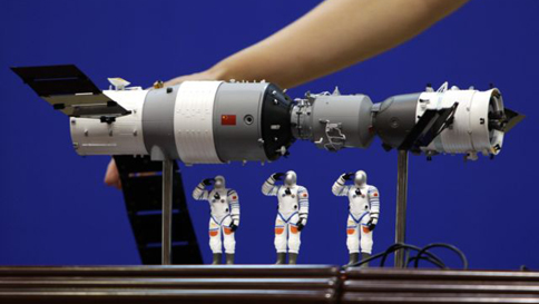 Μοντέλα του Shenzhou-9 και του Tiangong-1 παρουσιάστηκαν πριν από την εκτόξευση (Πηγή: AP)