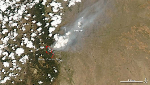 Τα μέτωπα στο Κολοράντι Σπρινγκς στις 27 Ιουνίου (Πηγή: NASA’s MODIS Rapid Response Team)