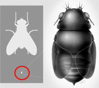 Η Euryplatea nanaknihali, όπως ονομάστηκε το νέο είδος, είναι 15 φορές μικρότερη από την κοινή οικιακή μύγα, και μόλις αναγνωρίστηκε ως το μικρότερο δίπτερο έντομο του κόσμου. Δίπτερα είναι η ομάδα που περιλαμβάνει όχι μόνο τις μύγες, αλλά και τα κουνούπια και τις σκνίπες (αριστερά, σύγκριση μεγέθους ανάμεσα στην Ε.nanaknihali και την οικιακή μύγα. Πηγή Β.Βrown, AESA).