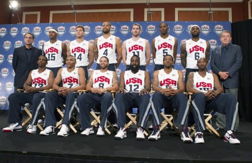 Πέντε μέλη της ομάδας που κατέκτησε το χρυσό μετάλλιο στους Ολυμπιακούς Αγώνες του Πεκίνου, το 2008, συμπεριλήφθηκαν στην αποστολή των Ηνωμένων Πολιτειών για τη διοργάνωση του Λονδίνου. Στη 12αδα των ΗΠΑ, λοιπόν, που ανακοινώθηκε από τον πρόεδρο της αμερικανικής ομοσπονδίας, Τζέρι Κολάντζελο, θα είναι και πάλι οι Λεμπρόν Τζέιμς, Κόμπι Μπράιαντ, Καρμέλο Άντονι, Κρις Πολ και Ντερόν Ουίλιαμς, οι οποίοι επιστρέφουν για να ηγηθούν εκ νέου και να αποτελέσουν την «αιχμή του δόρατος» στο αδιαφιλονίκητο φαβορί για το χρυσό μετάλλιο στο Λονδίνο.