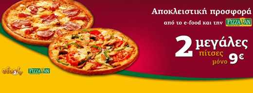 Αξίζει να σημειωθεί ότι ήδη έχει ξεκινήσει μοναδική προσφορά από την Pizza Fan και αποκλειστικά για τις παραγγελίες μέσω του e-food.gr, 2 μεγάλες πίτσες με μόνο 9 ευρώ.