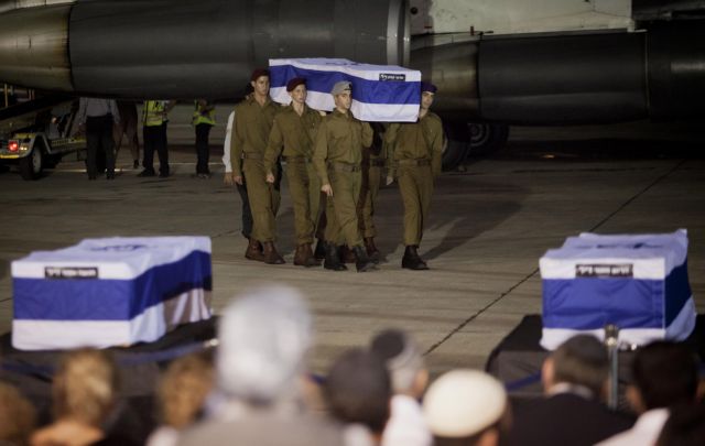 Οι συγγενείς των θυμάτων υποδέχτηκαν τις φέρετρα, καλυμμένα με τη σημαία του Ισραήλ, στο αεροδρόμιο Μπεν Γκουριόν, όπου έγινε και σύντομη τελετή.