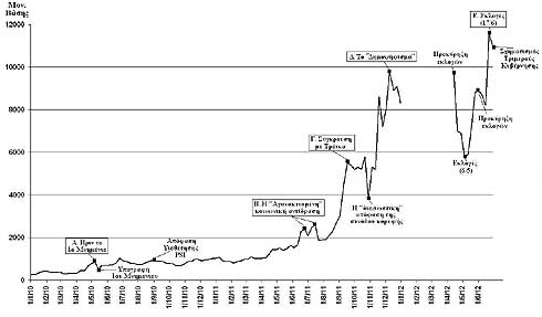 Διάγραμμα 1. Ο Κίνδυνος Πτώχευσης στην Ελληνική Οικονομία: 1/1/2010-30/6/2012
