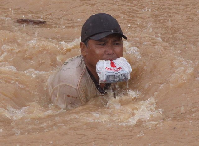 Η ένταση των βροχών του μουσώνα μειώθηκε τα ξημερώματα της Τετάρτης, αλλά το 60% ως 80% της πρωτεύουσας παρέμενε κάτω από νερό.