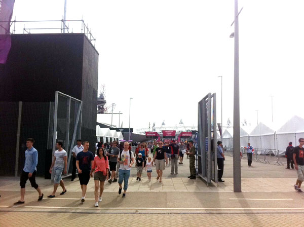 Έφτασα πολύ εύκολα και άνετα στο Ολυμπιακό Πάρκο. Στο επίκεντρο δηλαδή των γεγονότων. Ένα πολύχρωμο και ποικιλόμορφο κύμα με πήρε!!! Χιλιάδες κόσμου από όλες τις πλευρές του πλανήτη. Και στο βάθος το Ολυμπιακό Στάδιο.