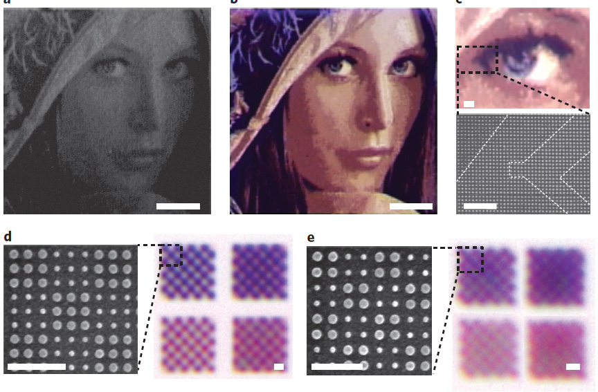 Με τον τρόπο αυτό, οι επιστήμονες από τη Σιγκαπούρη είναι οι πρώτοι στον κόσμο που κατάφεραν να τυπώσουν -μέσω μιας μεθόδου ηλεκτρονικής λιθογραφίας- την έγχρωμη προσωπογραφία μιας γυναίκας σε διαστάσεις 50Χ50 μικρόμετρα (εκατομμυριοστά του μέτρου) με ανάλυση περίπου 100.000 dpi.