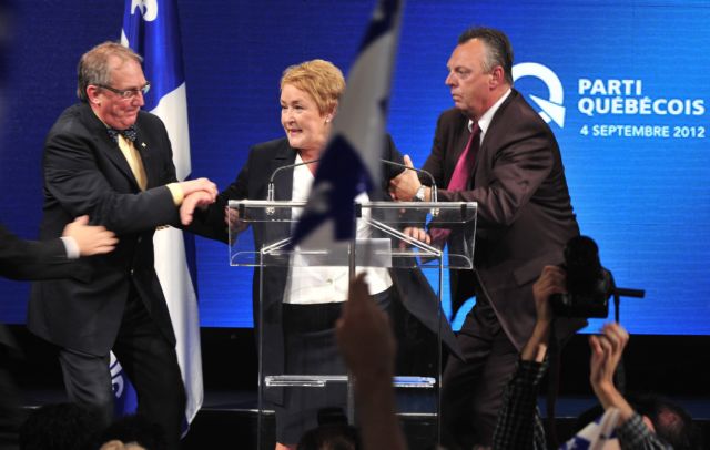 Άνδρες ασφαλείας έσπευσαν να απομακρύνουν την νέα πρωθυπουργό του Κεμπέκ από τη σκηνή του θεάτρου Metropolis, όπου εκφωνούσε την ομιλία της, την ώρα που ακούστηκαν οι πυροβολισμοί. Η ίδια επέστρεψε λίγο αργότερα για να ολοκληρώσει την ομιλία της.