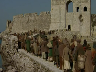Σκηνή από τα γυρίσματα: Γιάννης Σμαραγδής, Λάκης Λαζόπουλος, Sebastian Koch