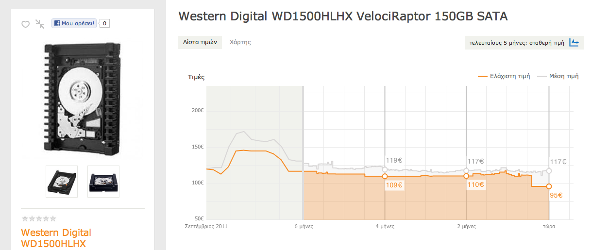Επίσης, το ιστορικό τιμών βοηθά στην κατανόηση των συνθηκών της αγοράς που επηρεάζουν τις τιμές των προϊόντων. Όπως π.χ. για τους σκληρούς δίσκους της Western Digital, όπου απεικονίζεται ξεκάθαρα το αντίκτυπο που είχαν οι πλημμύρες στην Ταϋλάνδη πέρυσι, άρα και τη σχετική διακύμανση στις τιμές τους, που στη συνέχεια σταθεροποιήθηκε.
