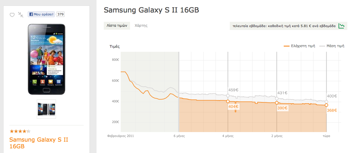 Για παράδειγμα, κοιτάζοντας το chart για τα Samsung Galaxy S II και Samsung Galaxy SIII, παρατηρείτε ότι η τιμή των Android μοντέλων της Samsung σταθεροποιείται μετά από έξι μήνες.