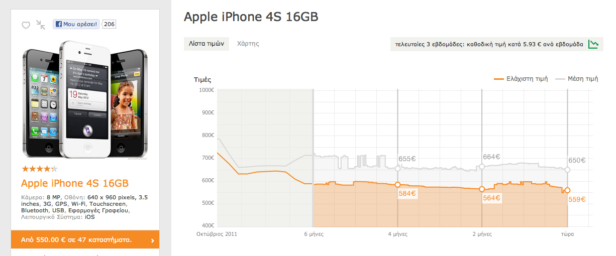 Αντίθετα, εξετάζοντας το chart του iPhone, παρατηρεί ότι γενικά οι τιμές των συσκευών της Apple έχουν μια σταθερότητα, άρα δε μπορεί να αναμένει δραματικές μειώσεις.