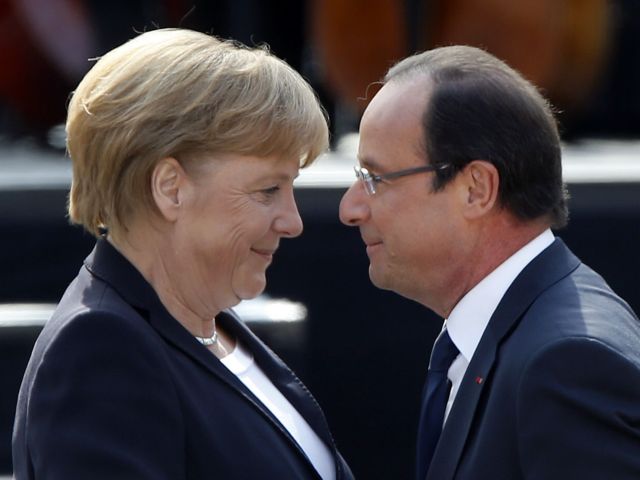Η Γαλλία και η Γερμανία «είναι η καρδιά της Ευρώπης», λένε από κοινού ο Γάλλος πρόεδρος Φρανσoυά Ολάντ και η Γερμανίδα καγκελάριος Άγνκελα Μέρκελ σε συνάντησή τους σε γερμανικό έδαφος επ' αφορμή της 50ής επετείου της συμφιλίωσης των δύο χωρών, καλώντας την Ευρώπη σε στενότερη ενοποίηση. «Όσο μεγάλες κι αν είναι οι οικονομικές προκλήσεις, ισχύει και θα συνεχίσει να ισχύει: Εμείς οι Ευρωπαίοι είμαστε ενωμένοι στην επιδίωξη της ευτυχίας» είπε η Γερμανίδα καγκελάριος. Στην «ταχύτητα» στάθηκε ο Ολάντ, στην «ποιότητα» η Μέρκελ για το θέμα της τραπεζικής ένωσης.