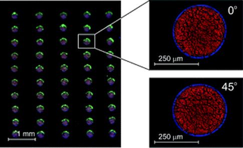 Προκειμένου όμως να αντικατασταθούν τα κάτοπτρα από υγρούς κρυστάλλους, τα μόρια των κρυστάλλων πρέπει να αποκτήσουν έναν συγκεκριμένο προσανατολισμό. Αυτό γίνεται με τη βοήθεια ενός υλικού σαν κόλλα, το οποίο ψεκάζεται μαζί με τους κρυστάλλους. Όταν στεγνώσει και στερεοποιηθεί, το υλικό αυτό όχι μόνο ευθυγραμμίζει τα λέιζερ αλλά επιπλέον λειτουργεί και ως ενεργό υλικό που πολλαπλασιάζει τα φωτόνια.