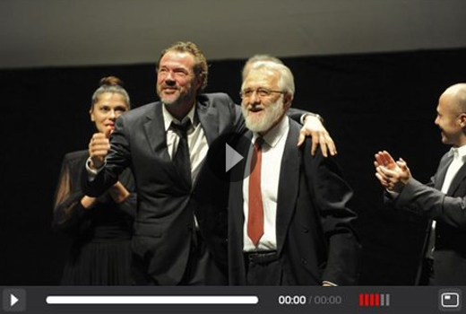 Στην ομιλία του ο σκηνοθέτης Γιάννης Σμαραγδής ευχαρίστησε τους φίλους που τον στήριξαν με την πίστη και την αγάπη τους και συγκεκριμένα αναφέρθηκε στους Αχιλλέα Κωνσταντακόπουλο, Κωστάντζα Σμπώκου, Σωτήρη Τσαφούλια, Ιζαμπέλα Αρβανίτη, Μάκη Μάτσα, Γιάννη Παπαδογιαννάκη και Ειρήνη Σουγανίδου την οποία χαρακτήρισε ευγενή πλοηγό της ταινίας του. Φανερά συγκινημένος ο σκηνοθέτης αναφέρθηκε στη σύζυγο και παραγωγό των ταινιών του Ελένη Σμαραγδή, της οποίας τα φτερά, όπως είπε χαρακτηριστικά, δανείζεται κάθε φορά για να της τα επιστρέψει στο τέλος της ταινίας. Ο Γιάννης Σμαραγδής έκλεισε το μήνυμα του ευχόμενος ο πόνος και η αγάπη αυτών που έχουν εμπλακεί στην ταινία να γίνει δώρο αθωότητας προς τις ψυχές του κοινού. Η Ειρήνη Σουγανίδου εξέφρασε τη χαρά της για αυτήν την ταινία που ξεκίνησε στη χειρότερη συγκυρία κι ευχήθηκε το «Ο Θεός Αγαπάει το Χαβιάρι» να δώσει δύναμη κι ελπίδα.