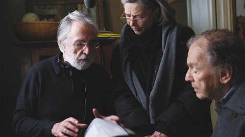 Ο Χάνεκε με τους πρωταγωνιστές της «Αγάπης» του, Ζαν-Λουί Τρεντινιάν και Εμανουέλ Ριβά