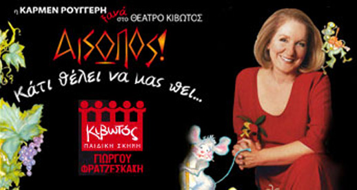 Η Κάρμεν Ρουγγέρη σε συνεργασία με την παιδική σκηνή «Κιβωτός» του Γιώργου Φρατζεσκάκη, επιστρέφει στο Θέατρο Κιβωτός από 21 Οκτωβρίου με την παράσταση «Αίσωπος, κάτι θέλει να μας πει…». http://entertainment.in.gr/html/ent/564/ent.133564.asp