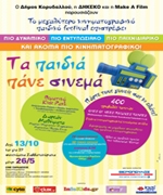 ![]() | «Τα παιδιά Πάνε Cinema» 2ο Φεστιβάλ Παιδικού Κινηματογράφου Το φεστιβάλ διεξάγεται στο Cine Παράδεισος, στον Κορυδαλλό, από τις 13/10/2012 έως τις 28/4/2013. |