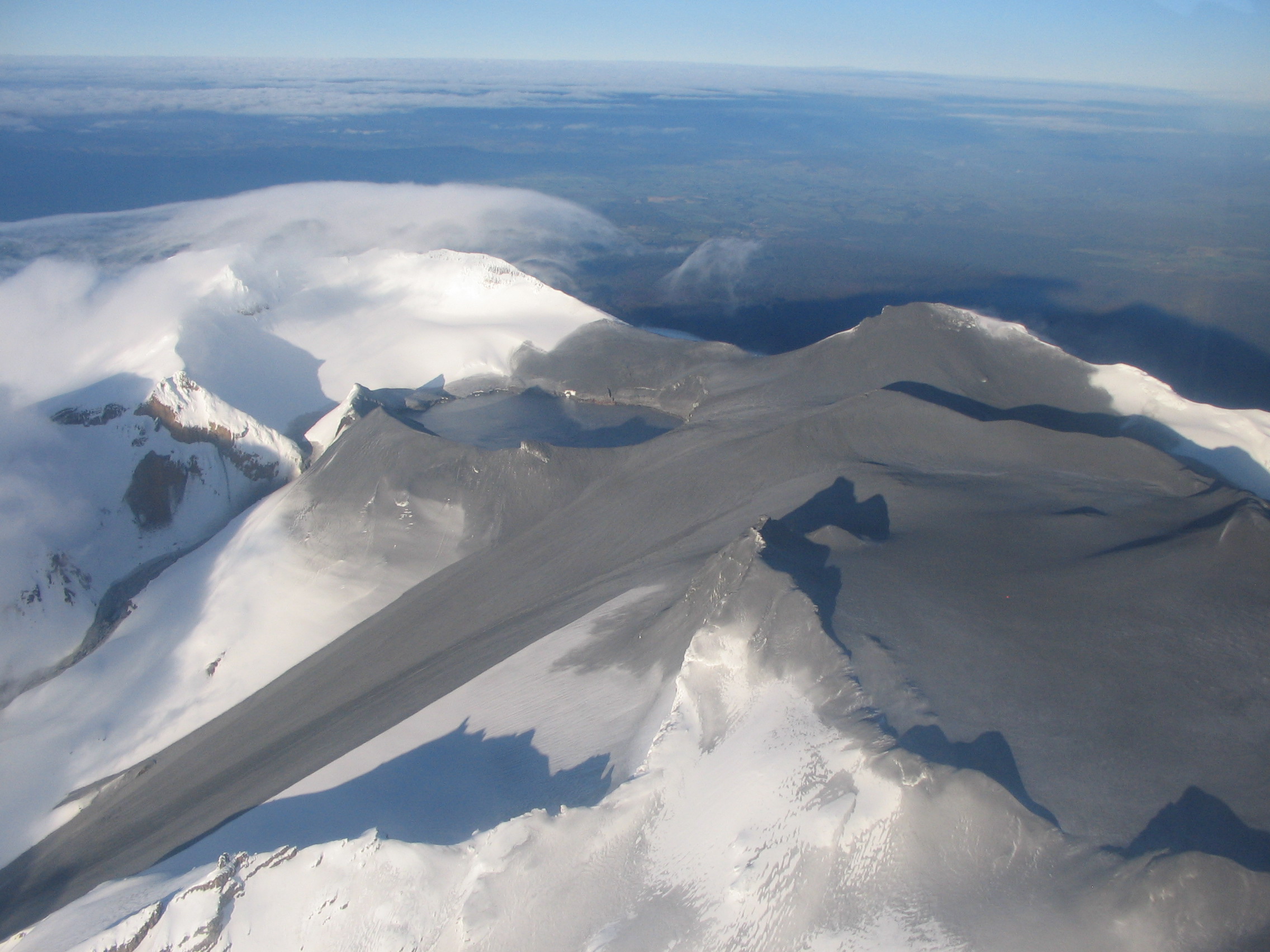 To ίχνος του λαχάρ από την έκρηξη του 2007 διακρίνεται δίπλα στην ηφαιστειακή λίμνη στην κορυφή του Ρουαπέχου