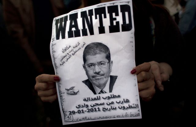 Οι διαδηλωτές έκοψαν τα σύρματα και εκατοντάδες από αυτούς έφτασαν μέχρι τον εξωτερικό τοίχο του προεδρικού μεγάρου φωνάζοντας συνθήματα για την πτώση του προέδρου, τα ίδια που φώναζαν πριν από σχεδόν δύο χρόνια για τον Χόσνι Μουμπάρακ.