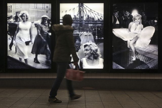 Η διασημότερη φωτογραφία της Μέριλιν Μονρόε με το λευκό φόρεμα που ανεμίζει εκτίθεται έξω από τον υπόγειο σταθμό της Times Square στη Νέα Υόρκη. Η μεγάλου μεγέθους φωτογραφία του Σαμ Σόου αποτελεί μέρος της έκθεσης Metropolitan Transportation Authority's Arts που εγκαινιάστηκε την Πέμπτη και θα διαρκέσει ένα χρόνο.