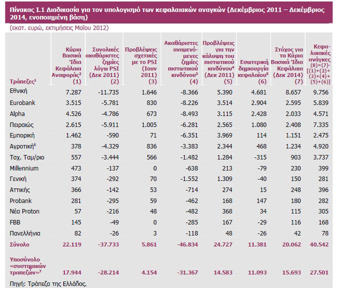 Όπως προστίθεται, η Τράπεζα της Ελλάδος προέβη σε εκτίμηση των κεφαλαιακών αναγκών των ελληνικών τραπεζών για την περίοδο 2012-2014.