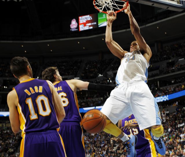 Οι Νάγκετς σταμάτησαν τους Λέικερς. Το νικηφόρο σερί (πέντε νίκες) της ομάδας του Λος Αντζελες σταμάτησε στο Ντένβερ, με τους γηπεδούχους να παίρνουν τη νίκη με 126-114. Ο Κόρεϊ Μπρούερ ήταν ο μεγάλος πρωταγωνιστής των Νάγκετς με 27 πόντους στο ενεργητικό του. Πολύ καλός ήταν και ο Κένεθ Φαρίντ με 21 πόντους και 15 ριμπάουντ. Οι «λιμνάνθρωποι» έχασαν 5:02 πριν το τέλος της τρίτης περιόδου τον Ντουάιτ Χάουαρντ, ο οποίος αποβλήθηκε για αντιαθλητικό φάουλ επειδή χτύπησε στο πρόσωπο τον Φαρίντ. Ο Κώστας Κουφός είχε 10 πόντους, 3 ριμπάουντ, 2 τάπες, 1 ασίστ και 1 κλέψιμο σε 19:40 συμμετοχής. Από τους Λέικερς καταπληκτικός ήταν ο Κόμπι Μπράιαντ, που πέτυχε 40 πόντους, αλλά δεν μπόρεσε να αποτρέψει το… μοιραίο για την ομάδα του.