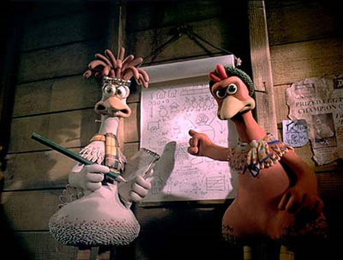 Η «Μεγάλη Απόδραση» με… φτερά και πούπουλα και ένα από τα πιο πνευματώδη κινούμενα σχέδια του τέλους της δεκαετίας του ΄90. Οι βραβευμένοι με Όσκαρ δημιουργοί των μικρού μήκους φιλμ με ήρωες τους Γουάλας και Γκρόμιτ φέρνουν ξανά στο προσκήνιο την παλιά τεχνική της πλαστελίνης και του στοπ καρέ, δημιουργώντας την πρώτη τους ταινία μεγάλου μήκους. Το έργο διαδραματίζεται σε βρετανικό ορνιθοτροφείο και έχει θέμα τις προσπάθειες των έγκλειστων πουλερικών να αποδράσουν και να ζήσουν μια ελεύθερη ζωή χωρίς την απειλή του μπαλτά και της μηχανής που φτιάχνει… κοτόπιτες. Σε επίπεδο περιεχομένου έχουμε ένα έξυπνο εύρημα: οι κότες, που θεωρούνται από τα πλέον κουτά ζώα, εκπονούν σχέδια απόδρασης, εκπαιδεύονται για πτήσεις και, επιπλέον, μιλούν με άψογη αγγλική προφορά. Σε επίπεδο εγχειρήματος, το αποτέλεσμα είναι εντυπωσιακό. Οι φωτισμοί προσδίδουν ατμόσφαιρα στα πλάνα, οι χαρακτήρες δεν μοιάζουν με τους συμβατικούς ήρωες του καρτούν, ενώ μετά τη φωτογράφηση καθένα από τα 110.000 καρέ που απαρτίζουν το σύνολο έτυχε ειδικής επεξεργασίας σε υπολογιστή, προκειμένου οι κινήσεις να αποκτήσουν ρεαλισμό και πλαστικότητα και οι ήρωες να γίνουν ακόμα πιο εκφραστικοί. Σε αυτά τα στοιχεία προσθέστε τους σπαρταριστούς διαλόγους και τις ευρηματικές καταστάσεις και θα έχετε ένα φιλμ στο προσωπικό ύφος των δημιουργών του, που θα αρέσει εξίσου σε παιδιά και σε ενήλικους.