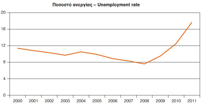 Το ποσοστό ανεργίας αυξήθηκε από 9,5% το 2009, παραμονές της κρίσης, στο 12,5% το 2010, έτος έναρξης του προγράμματος προσαρμογής που εφαρμόστηκε στη χώρα, και 17,7% το 2011. Η αύξηση ήταν δραματικότερη με την πάροδο του χρόνου, φτάνοντας στο 24,8% το τρίτο τρίμηνο του 2012.