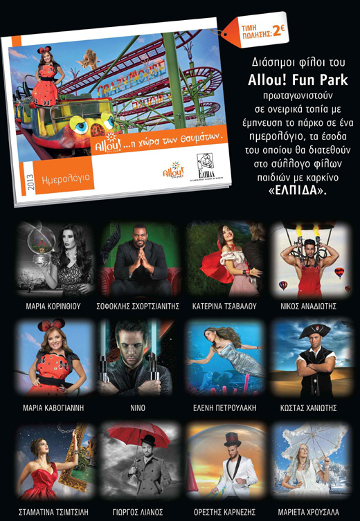 Το Allou! Fun Park, γιορτάζοντας τα 10 χρόνια λειτουργίας του, έρχεται ξανά κοντά στα παιδιά με ανάγκη μέσα από το «μαγικό» ημερολόγιο «Allou! Fun Park, η χώρα των θαυμάτων», έσοδα του οποίου διατίθενται στο σύλλογο φίλων παιδιών με καρκίνο «ΕΛΠΙΔΑ».