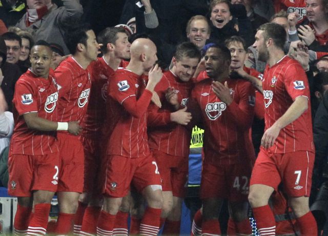 Ο Ντεμπά Μπα στο 25′ και ο Εντέν Αζάρ στο 45′ πέτυχαν τα γκολ των «μπλε», ενώ οι «άγιοι» κατάφεραν να ξαναμπούν νωρίς στο παιχνίδι με σκόρερ τον Λάμπερτ στο 58′ και να φτάσουν στην ισοφάριση με τον Πάντσον στο 75′. ΒΑΘΜΟΛΟΓΙΑ (σε 22 αγώνες) Μάντσεστερ Γ. 55 Μάντσεστερ Σίτι 48 Τσέλσι 42 Τότεναμ 40 Έβερτον 37 Άρσεναλ 34 (21αγ.) Γουέστ Μπρομ 33 Λίβερπουλ 31 Σουόνσι 30 Στόουκ Σίτι 29 Γουέστ Χαμ 26 (21αγ.) Νόριτς 26 Φούλαμ 25 Σάντερλαντ 25 Σαουθάμπτον 22 Νιούκαστλ 21 Γουίγκαν 19 Άστον Βίλα 19 Ρέντινγκ 16 ΚΠΡ 14