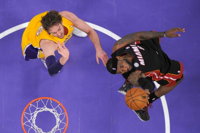 Με τον Λεμπρόν Τζέιμς σε «μεγάλα κέφια» οι Μαϊάμι Χιτ επικράτησαν στο Λος Αντζελες των Λέικερς με 99-90 κι έφτασαν στις 26 νίκες στο εφετινό πρωτάθλημα του ΝΒΑ, υποχρεώνοντας τους «λιμνανθρώπους» στην 22η ήττα τους. Ο άσος των πρωταθλητών σημείωσε 39 πόντους, ενώ ο Ουέιντ πρόσθεσε 27 και από τους γηπεδούχους ξεχώρισε ο Μπράϊαντ με 22 πόντους.