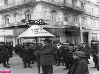 | | Στη δεκαετία του ’20 στην Αθήνα κυκλοφορούν αρκετά αυτοκίνητα. Στη συμβολή των οδών Πανεπιστημίου και Πατησίων ο τροχονόμος ρυθμίζει την κίνηση και διαφημίζει ταυτόχρονα τον κινηματογράφο Πάνθεον. |