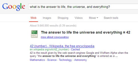 Ρωτήστε τη μηχανή «Ποια είναι η απάντηση για τη ζωή, το Σύμπαν και τα πάντα;» (What is the answer to life, the universe, and everything?).