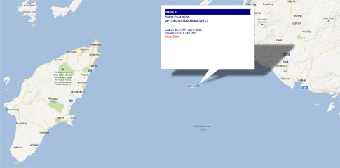 Στον χάρτη παρακάτω εμφανίζεται το στίγμα του «Bilim2» όπως το εντόπισε το σύστημα marinetraffic.com στις 17:00 ώρα Ελλάδος, στις 20 Μαρτίου: