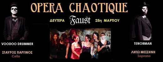 Δευτέρα 25 Μαρτίου 2013 Οι Opera Chaotique στο Faust, στην πιο φαντασμαγορική και χαοτική παράσταση καμπαρέ Περισσότερα…