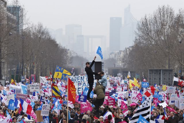 Διαδήλωση στο Παρίσι κατά της νομιμοποίησης των γάμων ομοφυλοφίλων
