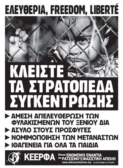 »Ζητάμε την αλληλεγγύη των εργαζόμενων και της νεολαίας, την δράση των συνδικάτων, των φοιτητικών συλλόγων, των κινήσεων υπεράσπισης δικαιωμάτων ώστε να απελευθερωθούν τώρα, να κλείσουν τώρα τα κολαστήρια-σταρόπεδα συγκέντρωσης, για να δοθεί άσυλο στους πρόσφυγες και νομιμοποίησης στους μετανάστες , για να έχουν τα παιδιά τους ιθαγένεια και όχι αποκλεισμό».