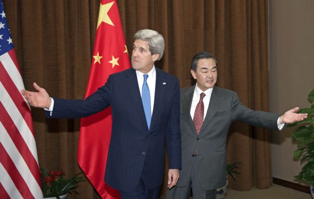 Ο Τζον Κέρι συναντά τον ομόλογό του Ουάνγκ Γι, πριν από τις σύντομης διάρκειας συναντήσεις του με τον πρόεδρο Σι Τζινπίνγκ, τον πρωθυπουργό Λι Κετσιάνγκ και άλλους κινέζους αξιωματούχους.