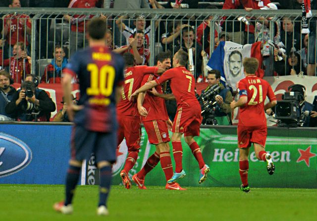Η Μπάγερν Μονάχου «αποκαθήλωσε» τη Μπαρτσελόνα και συντρίβοντάς τη με 4-0 στο Μόναχο βρίσκεται από το βράδυ της Τρίτης με το...1,5 πόδι στον τελικό του Champions League. Η «Μπάρτσα» πλέον χρειάζεται ένα θαύμα πολύ μεγαλύτερο από το αντίστοιχο εναντίον της Μίλαν, στη ρεβάνς των ημιτελικών την επόμενη εβδομάδα στο «Καμπ Νου». Την Τετάρτη ο έτερος πρώτος ημιτελικός ανάμεσα στην Μπορούσια Ντόρτμουντ και στην Ρεάλ Μαδρίτης.