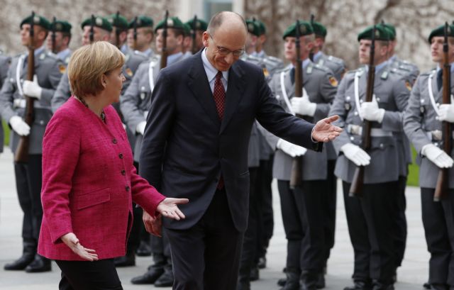 Τη διαβεβαίωση ότι η Ιταλία δεν θα παρεκκλίνει από τις πολιτικές οικονομικής εξυγίανσης παρείχε ο Ενρίκο Λέτα στην «επίσημη πρώτη» με την Άνγκελα Μέρκελ στο Βερολίνο, κομίζοντας ταυτόχρονα το μήνυμα στην γερμανίδα καγκελάριο πως σήμερα ηγείται της Ιταλίας μία κυβέρνηση πολιτικών που θα χρησιμοποιήσει όλες τις δυνάμεις της προς δύο κατευθύνσεις: την αποκατάσταση της εμπιστοσύνης των πολιτών στην πολιτική και την καταπολέμηση της ανεργίας. Ακόμη πιο σαφές ήταν όμως το μήνυμα της Μέρκελ: Πρέπει να συνεχίσουμε στο δρόμο της δημοσιονομικής προσαρμογής...