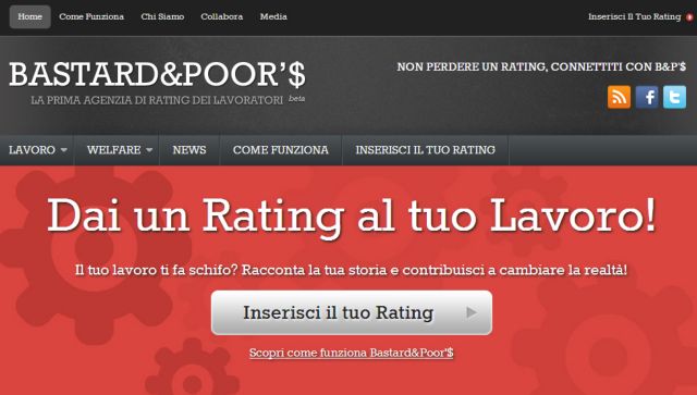Εργασιακή ασφάλεια, τήρηση των συμβάσεων, εργασιακό κλίμα, μισθοί και άδειες: Παραμέτρους σαν και αυτές εξετάζει, με βάση τις αναφορές των εργαζομένων, ο «Bastard&Poor'$», ο πρώτος ιταλικός «οίκος αξιολόγησης» για εργοδότες. Ο οίκος λειτουργεί μέσω Διαδικτύου υπόσχεται εχεμύθεια σε όσους συνεισφέρουν στοιχεία για τις επιχειρήσεις στις οποίες εργάζονται.