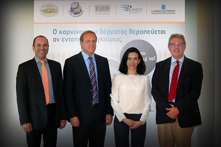 Η φωτογραφία είναι από τη συνέντευξη Τύπου στην οποία παρευρέθηκα. (Από αριστερά προς δεξιά) Δημήτρης Κοτταράς Διευθυντής Ιατρικής Επικοινωνίας LA ROCHE-POSAY, Αλέξανδρος Ι. Στρατηγός Καθηγητής Δερματολογίας – Αφροδισιολογίας Ιατρικής Σχολής Πανεπιστημίου Αθηνών και Υπεύθυνος Οργανωτικής Επιτροπής Ευρωμελανώματος 2013, Φιλύρα Παπακώστα, Διευθύντρια Μάρκας LA ROCHE-POSAY, Δημήτρης Ρηγόπουλος, Καθηγητής Δερματολογίας & Αφροδισιολογίας Πανεπιστημίου Αθηνών και Πρόεδρος ΕΔΑΕ.