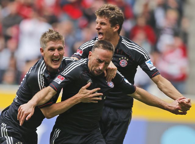 «H Mπάγερν Μονάχου καταφτάνει δυνατότερη από ποτέ στο δρόμο για τον μεγάλο τίτλο. Στέφεται πρωταθλήτρια κάθε φορά νωρίτερα από όλους. Σβάινσταϊγερ, Μέλερ, Λαμπ, Ριμπερί…», ήταν κάποιοι από τους στίχους.