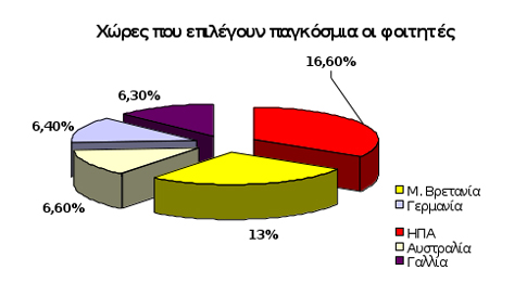 Σε παγκόσμια κλίμακα, κυρίαρχα κράτη, αναφορικά με τις προτιμήσεις των σπουδαστών, αναδεικνύονται οι ΗΠΑ και η Μ. Βρετανία (Σχήμα 3).